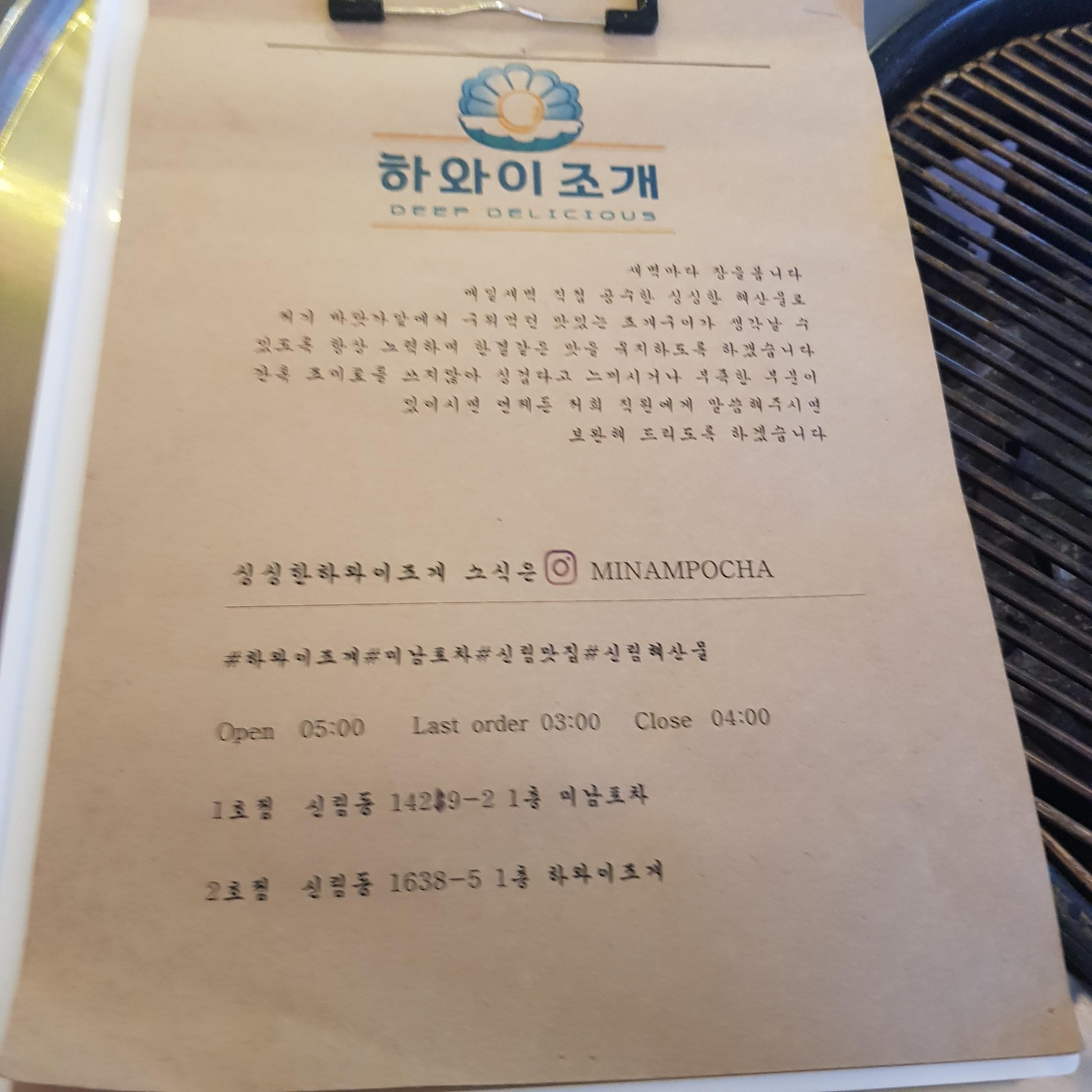 안녕하세요 저는 신림에서 조개를 먹고 싶어서 신림 맛집 하와이 조개를 방문하였습니다.