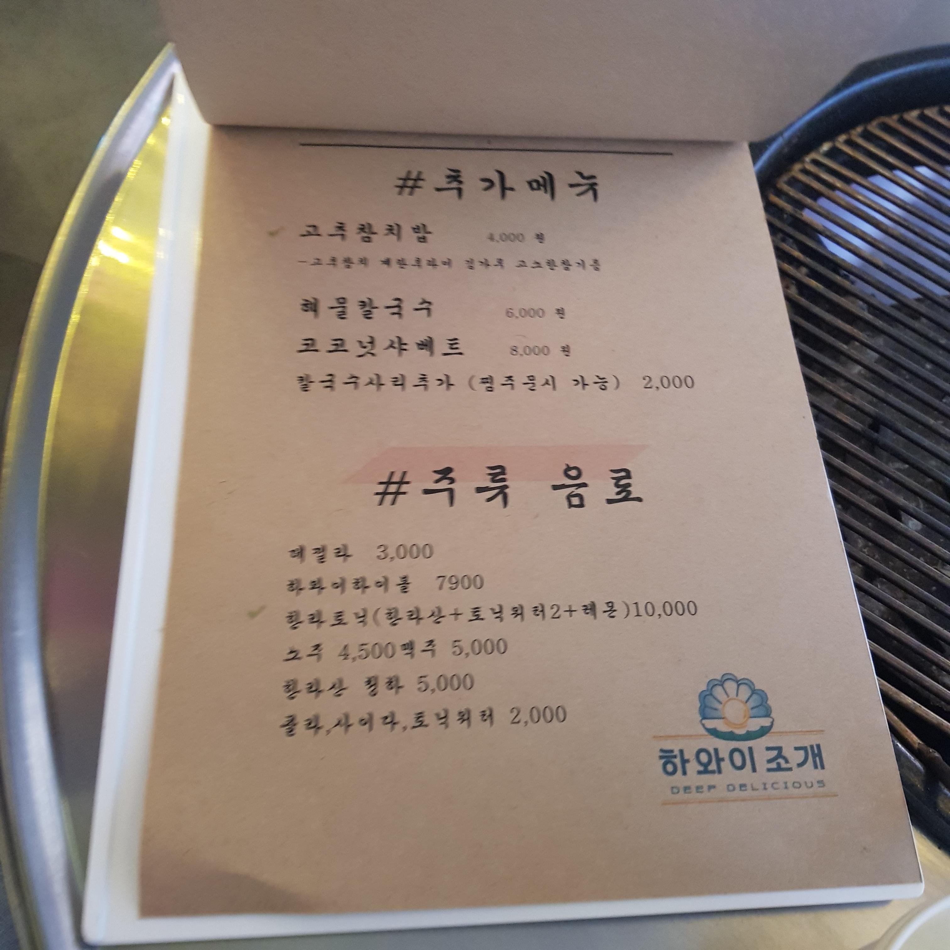 대표 메뉴 같은 경우에는 하와이 조개구이 2인을 많이 먹고요 또는 전골을 많이 먹어요.