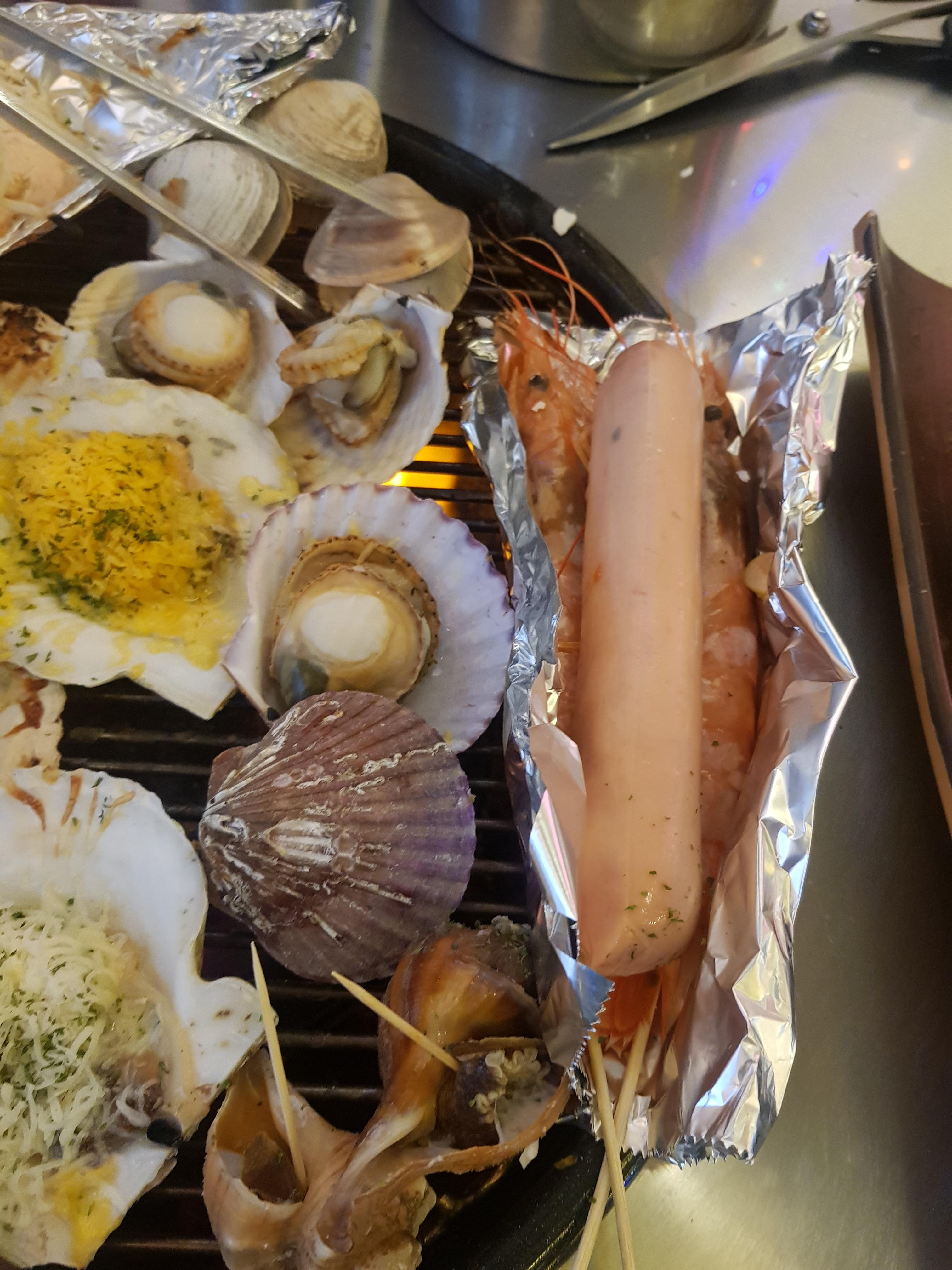 소시지도 있고 각종 조개구이에 요리도 해서 나오고 저사진에 있는 모든 음식이 3만 9천 원이더라고요 가격적인 부분에서는 정말 만족스럽고요. 2인에서 먹기에는 정말 배부른 정도는 아니지만 맛있게 먹었습니다. 아마 바닷가 근처에서 먹었으면 못해도 4만 원이 아니라 8만 원은 주고 먹어야 될 거 같습니다.