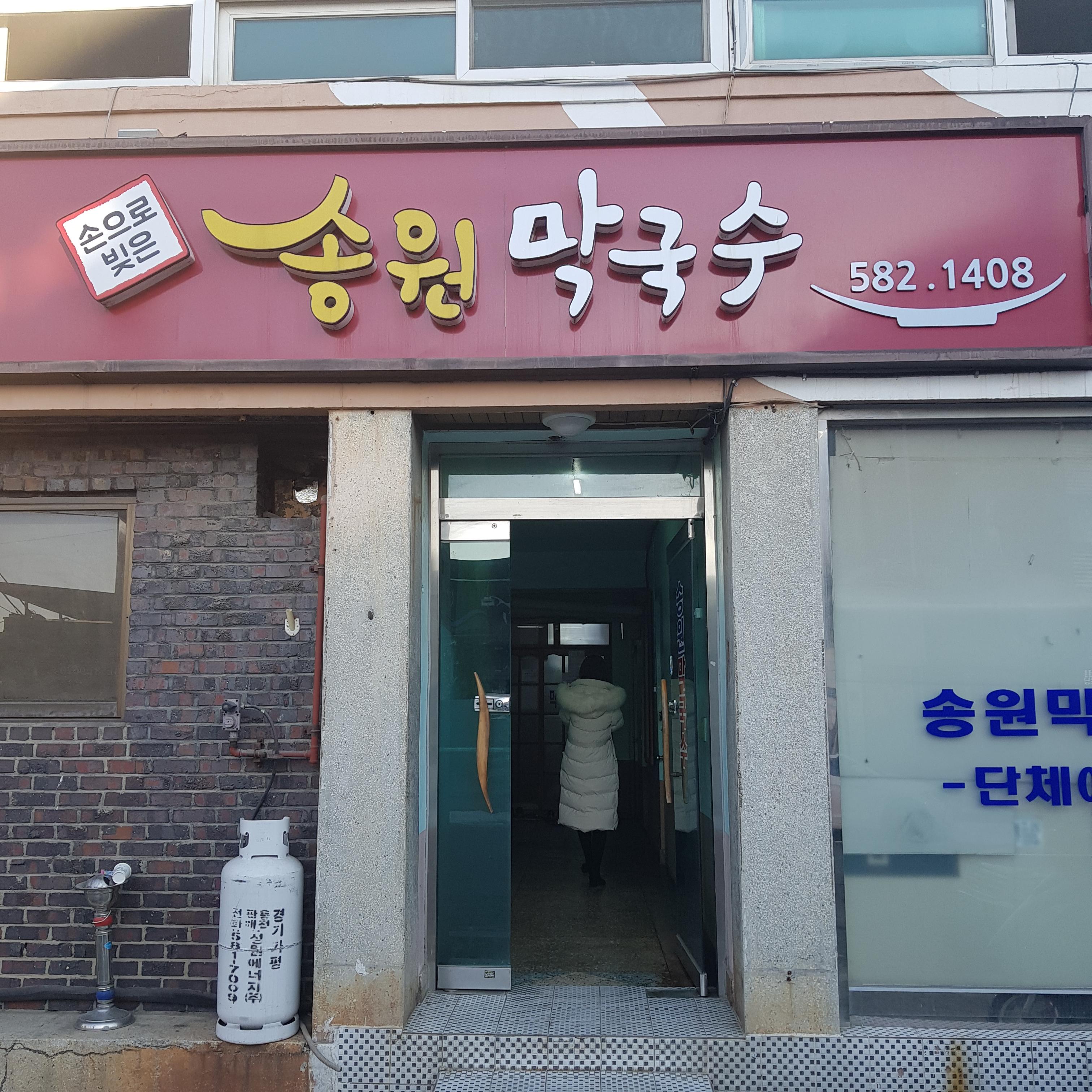 송원 막국수에 입구입니다. 점심시간에 도착하면 사람들이 많아서 줄이 엄청 길어요 저는 4시 30분에 도착해서 사람이 별로 없더라고요.