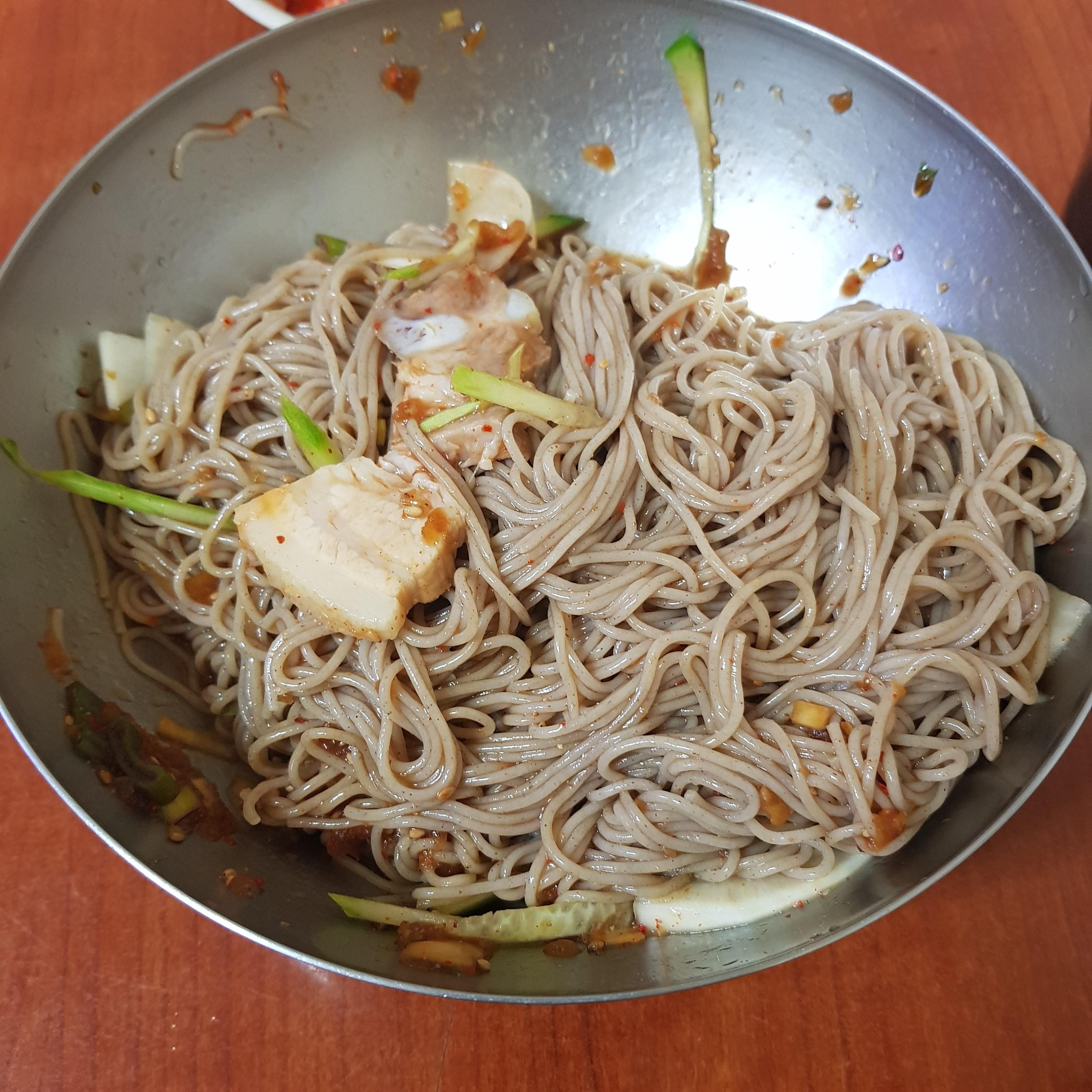 막국수 곱빼기를 시켰습니다. 곱빼기를 시키면 1덩어리가 더 나와서 양이 엄청 푸 집합니다.