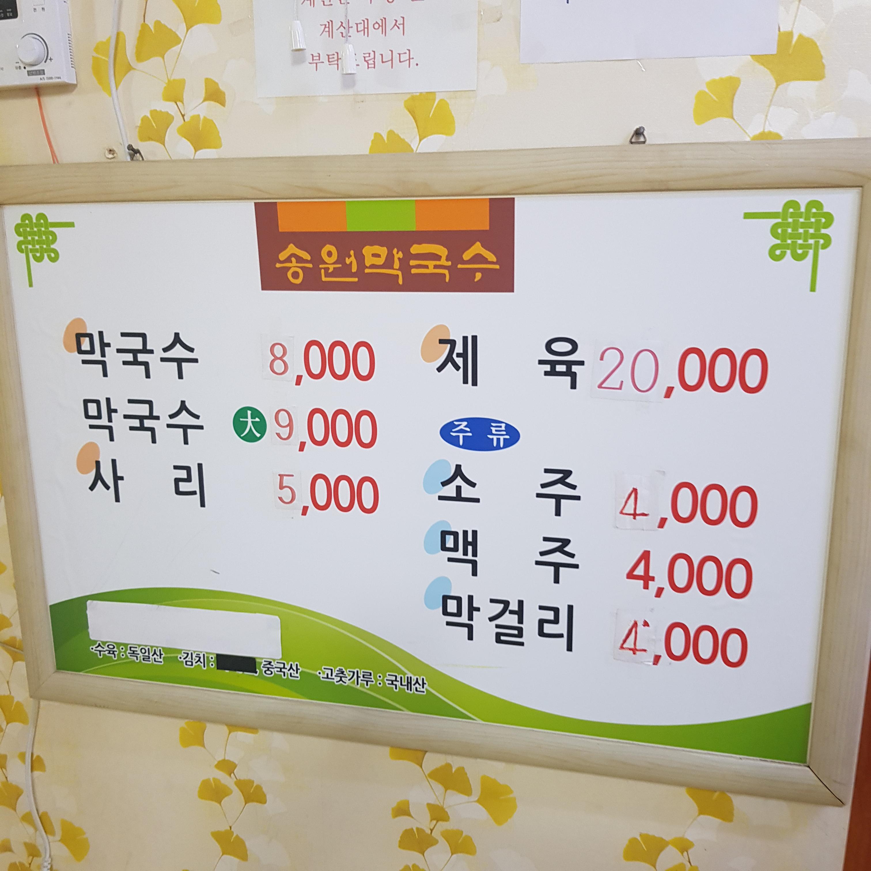 송원 막국수 가게 내부입니다.