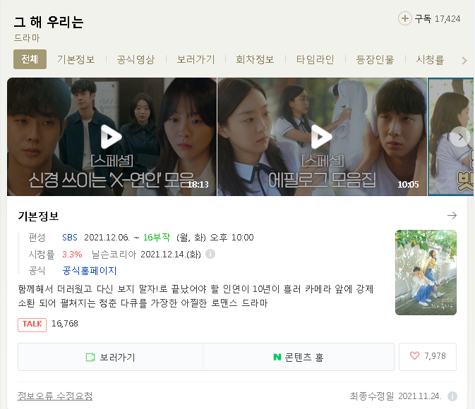 지금 현재 풋풋한 첫사랑의 추억을 소환하는 과거부터 이별 후 애증의 재회로 얽힌 현재까지, 최웅과 국연수의 10년 서사를 더욱 애틋하고 설레게 그려내 드라마 그해 우리는 실시간으로 시청이 가능합니다. 물론 무료이고요 실시간으로 시청하시게 제가 편하게 링크도 남겨 두겠습니다. 처음엔 감성 아련으로 이런 느낌일 줄 알었는데 생각보다 발랄해 보여서 더 흥미가 생긴 드라마 그해 우리는 부디 재밌게 보셨으면 좋겠습니다. 드라마 속 등장인물을 포함하여 모두 알고 보시면 좋을 거라고 생각합니다. 제가 링크를 남겨 두겠습니다. 모두 재밌게 시청하시면 됩니다. 들어가서 링크를 타고 들어가시면 시청을 가능합니다.