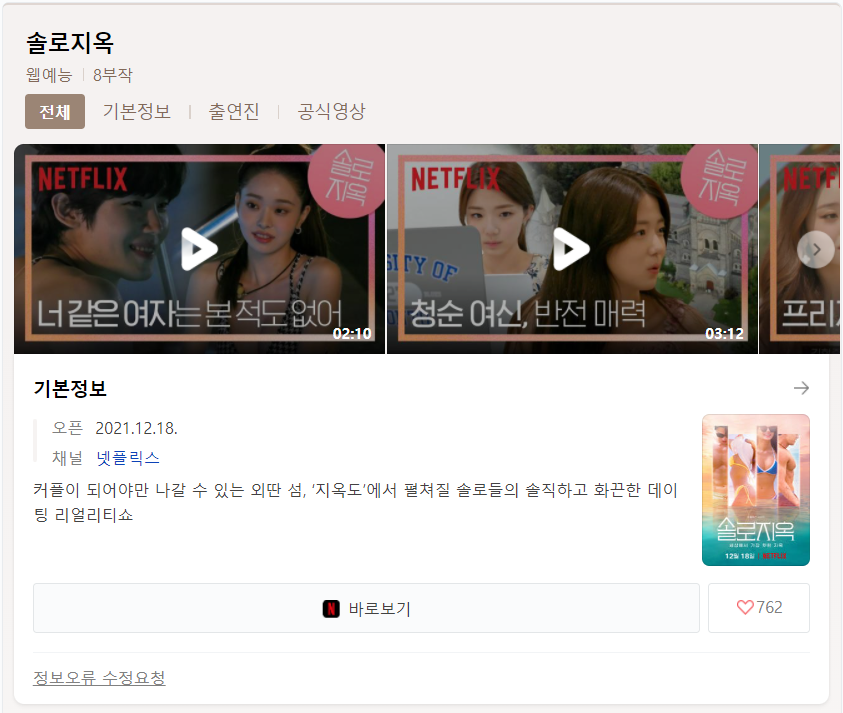 지금 현재 많은 사랑을 받고 있는 솔록 지옥에 대해서 말씀드리겠습니다. 코로나19 시국, 크리스마스에도 집콕을 선택하여 시청자들이 뜨거운 관심을 가진 콘텐츠가 있다고 합니다. 지금 바로 넷플릭스 웹 예능 솔록 지옥입니다. 지난 18일 베일을 벗은 이 작품은 공개가 되면서 커플이 되어야만 나갈 수 있는 외딴섬 지옥도에서 펼쳐지는 솔로들의 솔직하고 화끈한 데이팅 리얼리티쇼라고 합니다.