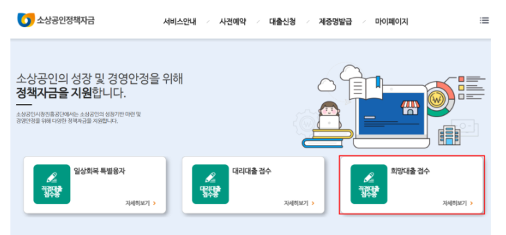 소상공인 희망대출 정책자금 신청 바로가기