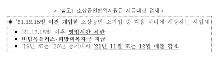 2021년 12월 27일 이후 소상공인 방역지원금을 받는 업체 중 저신용 소상공인을 대상으로 한다고 합니다. 2021년 12월 15일 이전 개업한 소상공인 소기업 중 다음에 하나에 해당하는 사업체 기준을 했습니다. 2021년 12월 18일 이후 영어시간제한을 받았거나 버팀목 플러스 희망회복 자금을 지급받았으면 대상에 되고 19년 또는 20년 동기 대비 21년 1월 또는 12월 매출 감소가 있는 사업장이면 소상공인 희망대출 자금을 신청할 수 있습니다. 제가 신청할 수 있는 링크를 남겨두겠습니다.