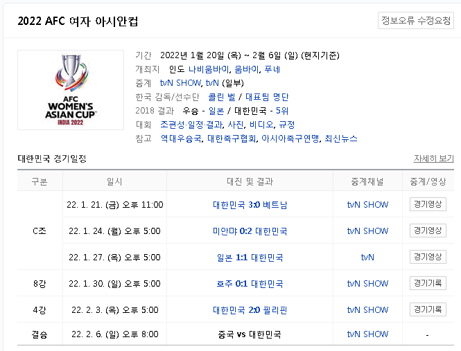 아시안컵 결승 한국 vs 중국 실시간 중계