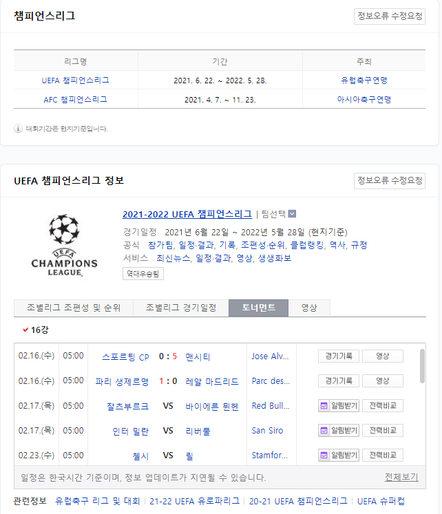 챔피언스리그 모든 경기 중계 바로가기