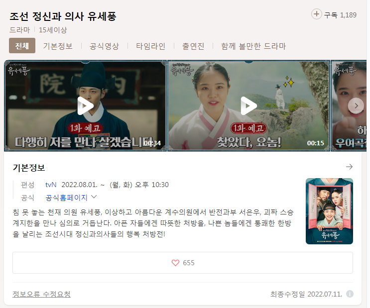 조선 정신과 의사 유세풍 무료 시청 바로가기