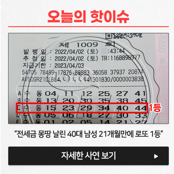 그는 로또 리치 분석 서비스를 믿고 2년 동안 계속해서 로또를 구입해 지난 1009회 만에 1등에 당첨됐고, 17억 원이라는 당첨금의 주인공이 됐다고 합니다. 2년 만에 로또 1위라니 정말 놀랍지 않나요? 그래서 제가 이 놀라운 소식을 전한 로또리치가 어떤 곳인지, 로또 분석 서비스가 무엇인지에 대해 좀 더 자세히 알아보았는데요.