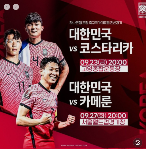 | 9/23 한국 vs 코스타리카 평가전 무료 중계 시청 바로가기 (0) | 2022.09.20 |