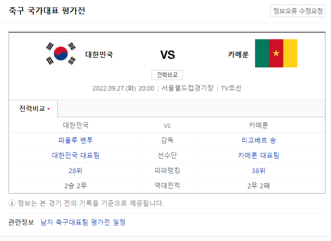 국가대표 대한민국 카메룬 평가전