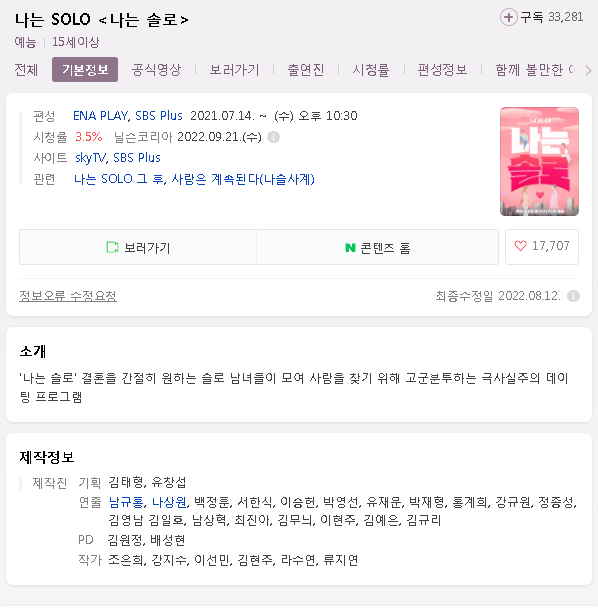 나는 solo 나는 솔로 무료 시청 바로가기