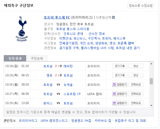 개막 후 10경기에서 승점 23을 쌓은 토트넘은 승점이 같은 맨체스터 시티에 골 득실에서 12-23으로 밀려 현재 리그 3위입니다. 4위 첼시(승점 19)의 무서운 추격이 계속되는 가운데 선두 경쟁을 이어가려면 5위 맨체스터 유나이티드(승점 16)전에서 승점을 얻어야 하는 상황입니다. 토트넘의 최근 흐름은 나쁘지 않기 때문에 기대해 볼 가치가 있습니다. 대출 EPL에서는 브라이튼 앤드 호브 알비온과 10라운드(1-0승), 에버튼과 11라운드(2-0승)까지 2연승을 달리며 프랑크푸르트(독일)와 유럽축구연맹(UEFA) 챔피언스리그(UCL) 조별리그에서 3-2로 이긴 것을 포함하면 공식전에서 3연승을 거뒀습니다.
