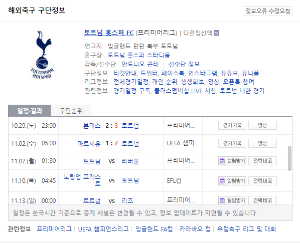 손흥민 중계 토트넘 리버풀 경기 일정
