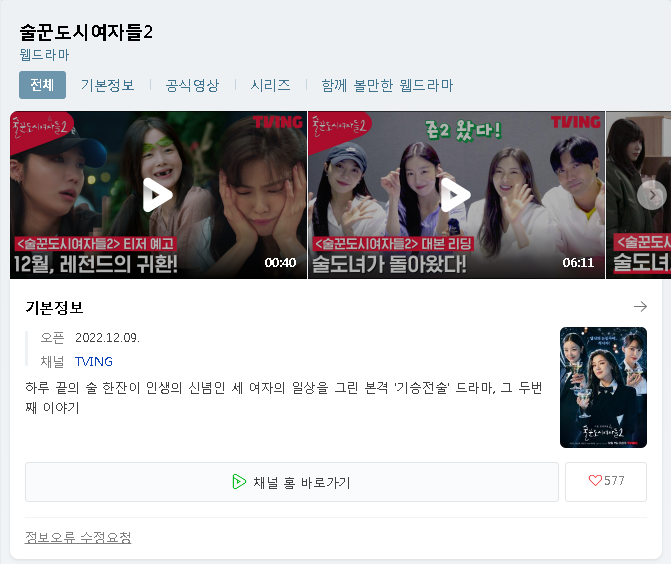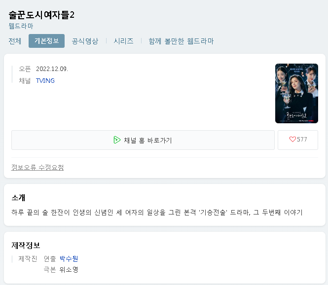 TVING 술꾼도시여자들2 무료 시청 다시 보기