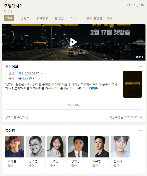 모범택시 2 다시 보기 재방송 무료시청