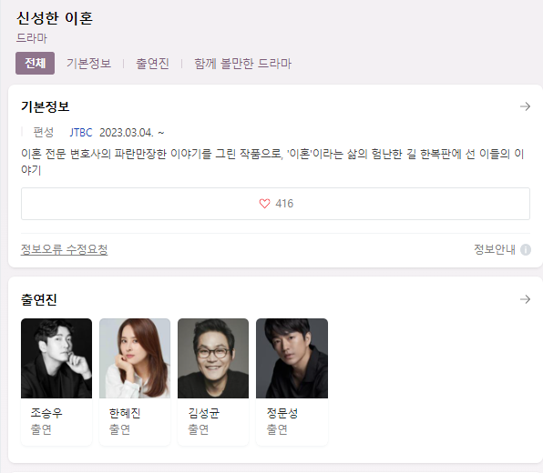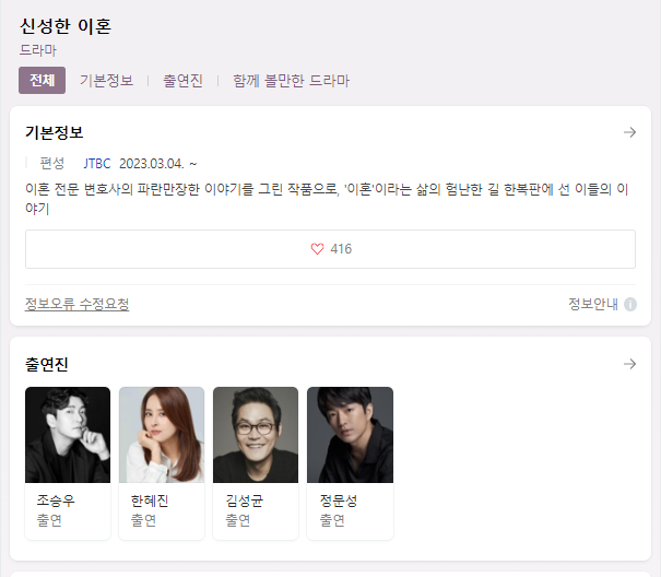 '신성한 이혼'은 동명의 인기 웹툰 원작을 바탕으로 한 드라마로 조승우(신성한 역), 한혜진(이서진 역), 김성균(장형근 역)이 출연을 확정했다. 대출정문성은 극중 '조정식 부동산' 대표이자 신성한(조승우 분)과 장현근(김성균 분)의 중학교 친구인 조정식 역을 맡는다.