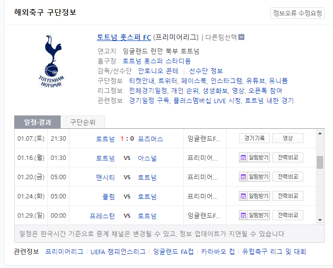손흥민 토트넘 맨시티 경기 일정