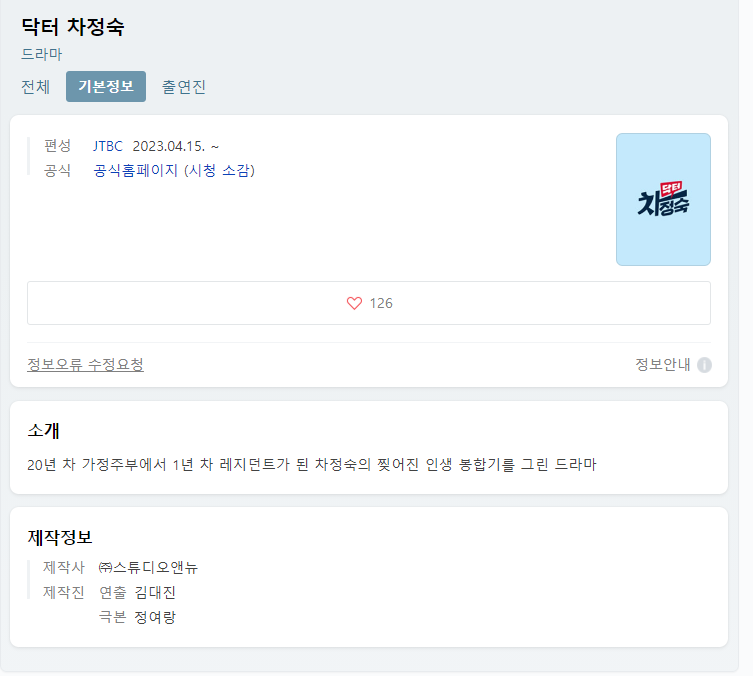 닥터 차정숙 드라마 무료시청 다시보기 재방송 바로가기
