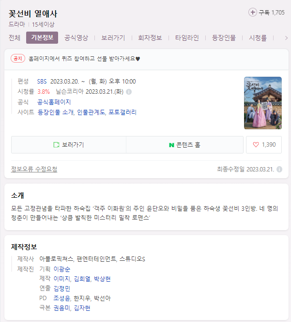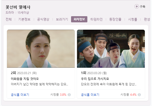 꽃선비 열애사 드라마 무료 시청 다시보기 재방송 등장인물