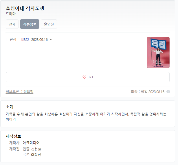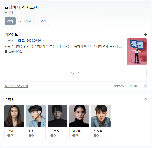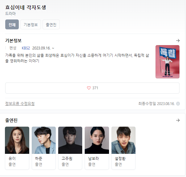 캐스팅이 확정된 순간부터 원래도 좋았던 몸을 더 완벽하게 하기 위해 운동 강도를 높였다고 했다"는 비하인드 스토리를 전하며 "피트니스 센터에서 운동하는 장면을 촬영할 때 완벽한 자세가 나와서 요즘 말로 '폼이 미쳤다'는 표현이 딱 맞았어요. 현장 스태프들도 모두 감탄하며 유이에게 운동법을 묻기도 했을 정도다. 대출 유이가 효심과 혼연일체가 된 연기를 완벽하게 선보일 것으로 자신한다고 전해 기대감에 불을 지폈습니다. '흥행퀸' 유이의 화려한 복귀가 기대되는 '효심의 각자도생'은 오는 9월 16일 오후 8시 5분 KBS 2TV에서 첫 방송된다.