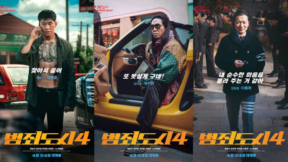영화 '범죄도시4'가 주요 캐릭터 출격을 예고하는 캐릭터 포스터 4종을 공개했다. '범죄도시4'는 괴물 형사 '마석도'(마동석)가 대규모 온라인 불법 도박 조직을 움직이는 특수부대 용병 출신 빌런 '백창기'(김무열)와 IT업계 천재 CEO '장동철'(이동휘)에 맞서 다시 돌아온 '장기수'(박지환), 광역수사대 & 사이버팀과 함께 벌이는 범죄 소탕 작전을 그린 영화다. 지난 18일 공개된 캐릭터 포스터 4종은 괴물 형사 '마석도'(마동석)부터 4세대 빌런 '백창기'(김무열), 돌아온 히든카드 '장가스'(박지환), 천재 CEO '장동철'(이동휘)까지 다양한 매력으로 '범죄도시4'를 이끄는 주역들의 모습을 담고 있어 기대감을 증폭시킨다. 먼저 시리즈를 대표하는 괴물 형사 '마석도'는 전편보다 한층 벌크업한 모습으로 시리즈 사상 가장 강력한 액션을 선보일 것을 예고한다.